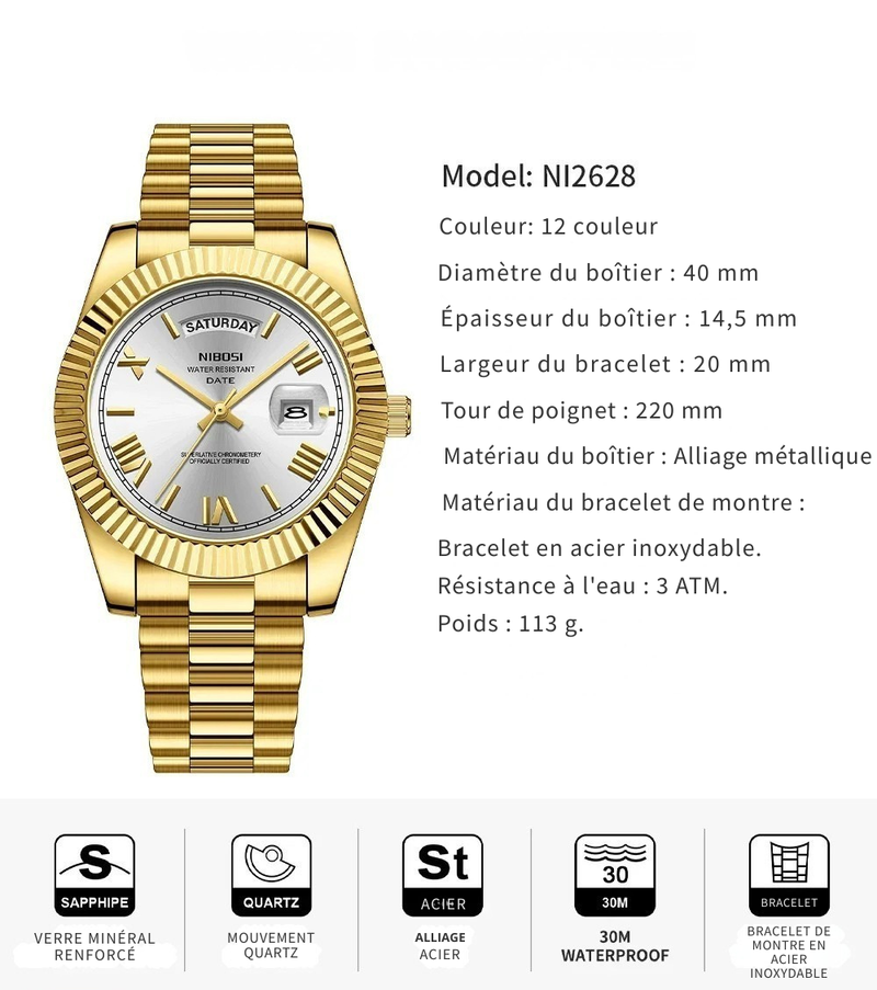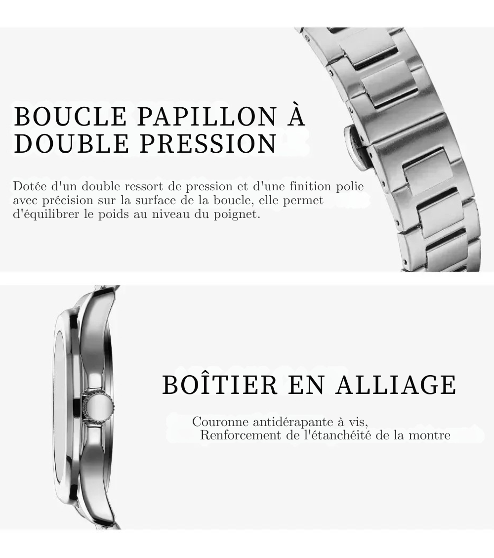 Affirmez votre style avec cette montre en acier premium. Précision quartz, luminosité nocturne, élégance masculine intemporelle.
